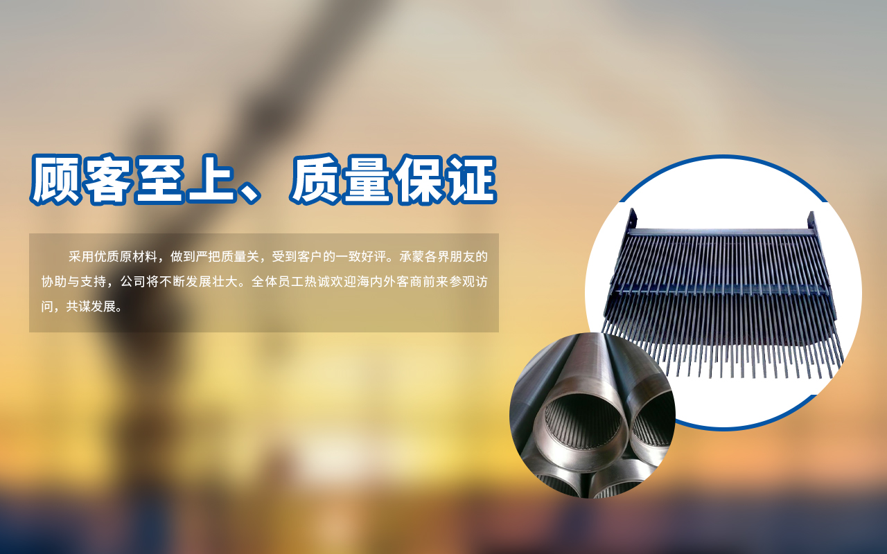 公司專業生產礦篩網(聚氨酯篩板、振動篩板、離心機篩籃、編織篩網、軋花網、焊接式震動篩網、約翰遜篩管、石油篩管、楔形網、圓筒篩、弧形篩、復合篩網、異型絲網)。沖孔網(爬架網,魚鱗沖孔網,防風抑塵網,異形沖孔網,防滑板,裝飾網,不銹鋼沖孔網,鍍鋅沖孔網,鋁板沖孔網,隔音網,蝕刻網,)鋼板網(平臺鋼板網,琵琶片)鋼格板(熱鍍鋅鋼格板、復合鋼格板、水溝蓋板、樓梯踏步板、鋼格柵板、不銹鋼格板、平臺鋼格板)。此外本公司還有剪板折彎、焊接、噴漆、整平、拋光、鍍鋅、浸塑、卷圓成型等常規業務。